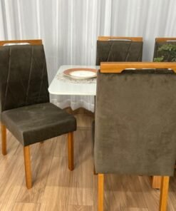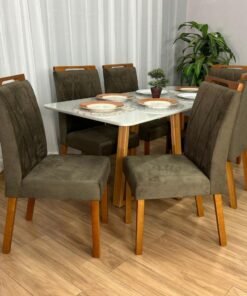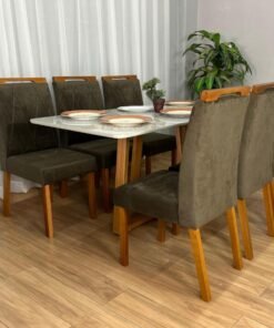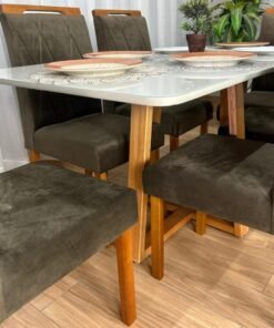 Seja o primeiro a avaliar “Mesa de Jantar Bali 1.60×0.80 Com 6 Cadeiras Isa – Cinamomo/Off White/Marrom Veludo”