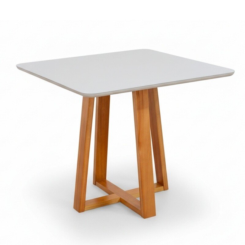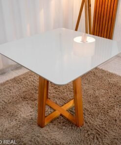 3{%%}Descrição{%%}Mesa de Jantar Bali 90×90 Vidro Off/Base Madeira Minas Plac – Entregue Montada