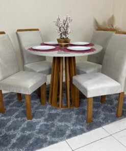 Mesa de Jantar Berlim 1.00×1.00 Redonda Com 4 Cadeiras Napoles/Londres – Cinamomo/Off White/Bege
