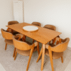 – Essa mesa tem o tamanho ideal para acomodar 6 cadeiras perfeitamente
