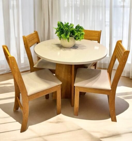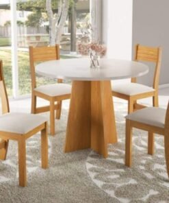 Mesa de Jantar Flipp Circular 0.90 Com 4 Cadeiras Brisa – Mel Blonde/Off White/Pastel