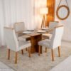 3{%%}Descrição{%%}Mesa de Jantar Flipp Redonda 90cm Off White 4 Cad. Sol Assento Veludo Bronze – Viero