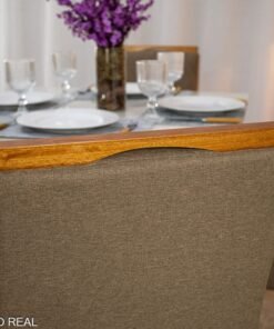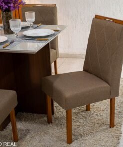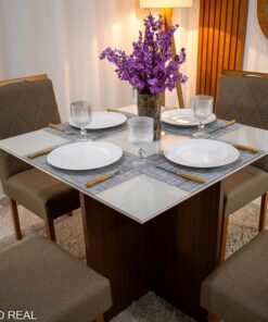3{%%}Descrição{%%}Mesa de Jantar Helo 90×90 Tampo MDF Vidro Off 4 Cad. Diamante Linho Capuccino 29033 Madeira Maciça