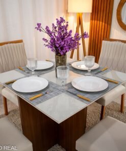 Seja o primeiro a avaliar “Mesa de Jantar Helo 90×90 Tampo MDF Vidro Off 4 Cad. Genova Veludo Bege 512 Madeira Maciça – Entregue Montada”