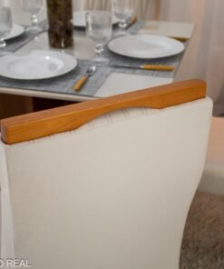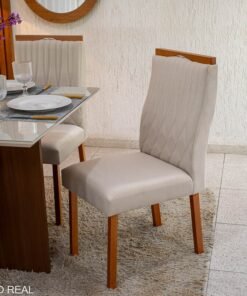 3{%%}Descrição#Como montar{%%}Mesa de Jantar Helo 90×90 Tampo MDF Vidro Off 4 Cad. Genova Veludo Bege 512 Madeira Maciça – Entregue Montada