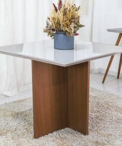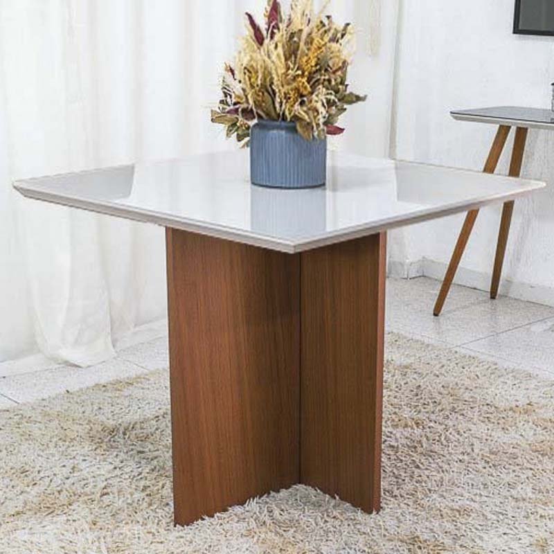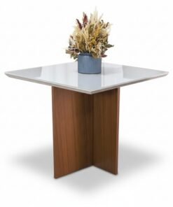 3{%%}Descrição{%%}Mesa de Jantar Helo 90×90 Tampo MDF Vidro Off Poliman