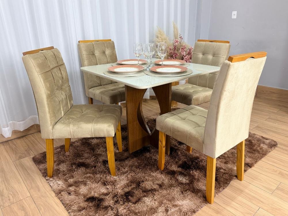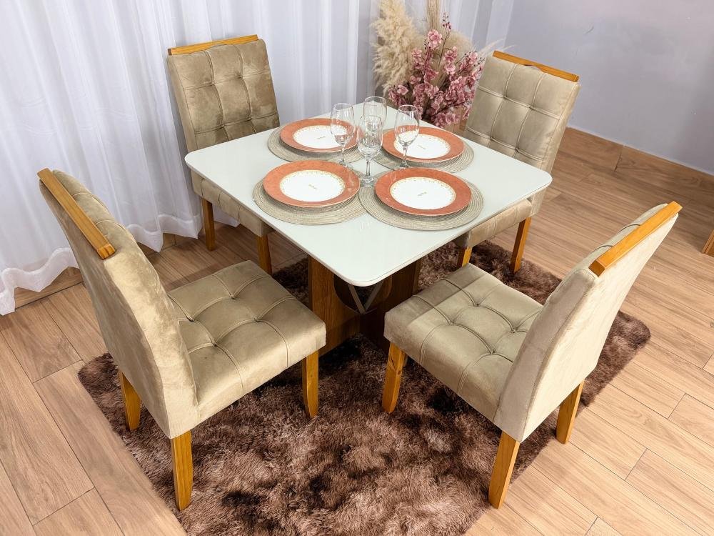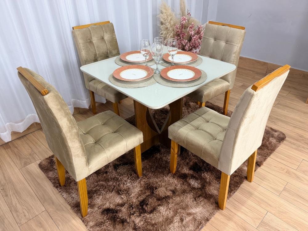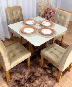 Mesa de Jantar Madri 0.90×0.90 Com 4 Cadeiras Londres – Minas Plac