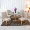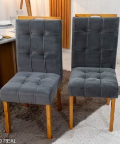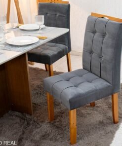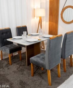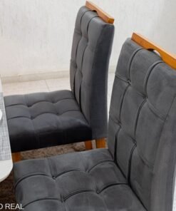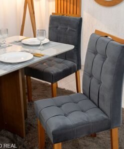 3{%%}Descrição{%%}Mesa de Jantar Moscou 120×80 Vidro Off/Base Cinamomo + 4 Cad. Londres Veludo Chumbo Madeira Minas Plac – Entregue Montada