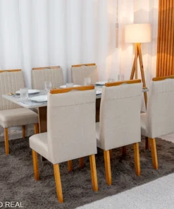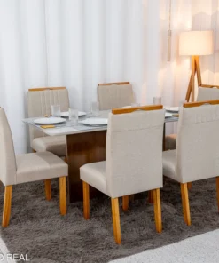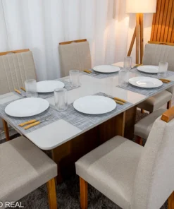 Seja o primeiro a avaliar “Mesa de Jantar Moscou 160×80 Vidro Off/Base Cinamomo + 6 Cad. Atlanta Linho Bege Cru Madeira Minas Plac – Entregue Montada”