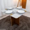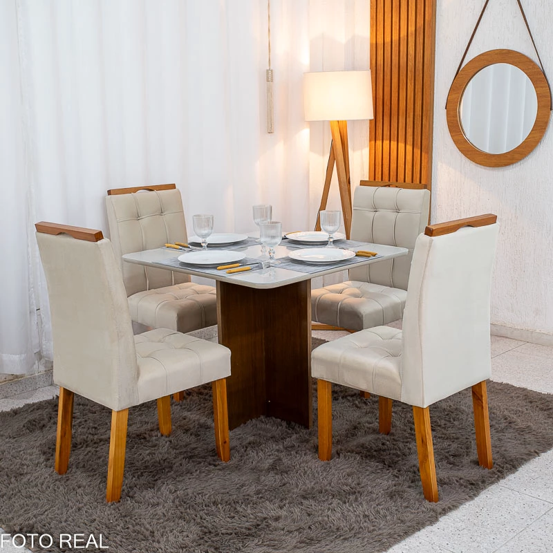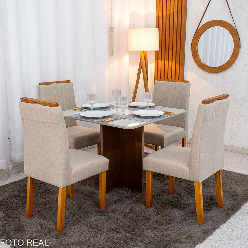Mesa de Jantar Moscou 90×90 Vidro Off/Base Cinamomo + 4 Cad. Londres Madeira Minas Plac – Entregue Montada