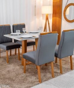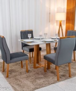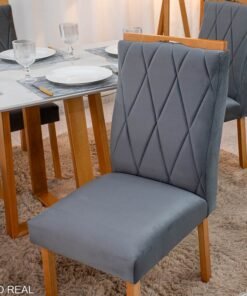 3{%%}Descrição#Como Montar{%%}Mesa de Jantar Pedro Mel Vidro Off 120×80 4 Cadeiras Lisboa Veludo Cinza 507 Madeira Maciça Art Assento – Entregue Montada