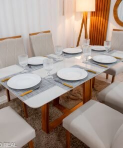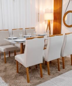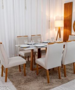 Seja o primeiro a avaliar “Mesa de Jantar Pedro Mel Vidro Off 160×80 6 Cadeiras Lisboa Veludo Bege 512 Madeira Maciça Art Assento – Entregue Montada”