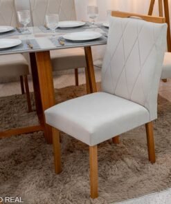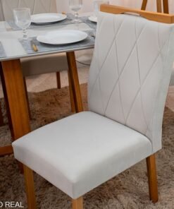 3{%%}Descrição#Como Montar{%%}Mesa de Jantar Pedro Mel Vidro Off 160×80 6 Cadeiras Lisboa Veludo Bege 512 Madeira Maciça Art Assento – Entregue Montada