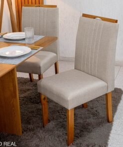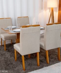 3{%%}Descrição{%%}Mesa de Jantar Salina 120×80 Londres Cinamomo Cel + 4 Cad. Atlanta Linho Bege Cru Madeira Minas Plac – Entregue Montada