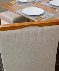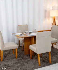 Mesa de Jantar Salina 120×80 Tampo Londres Cinamomo Cel Móveis + 4 Cad. Atlanta Linho Bege Cru Madeira Minas Plac – Entregue Montada