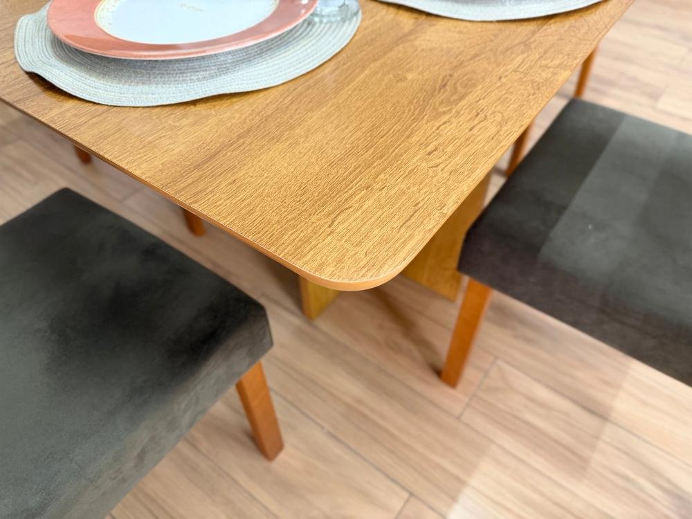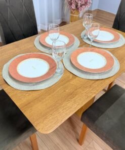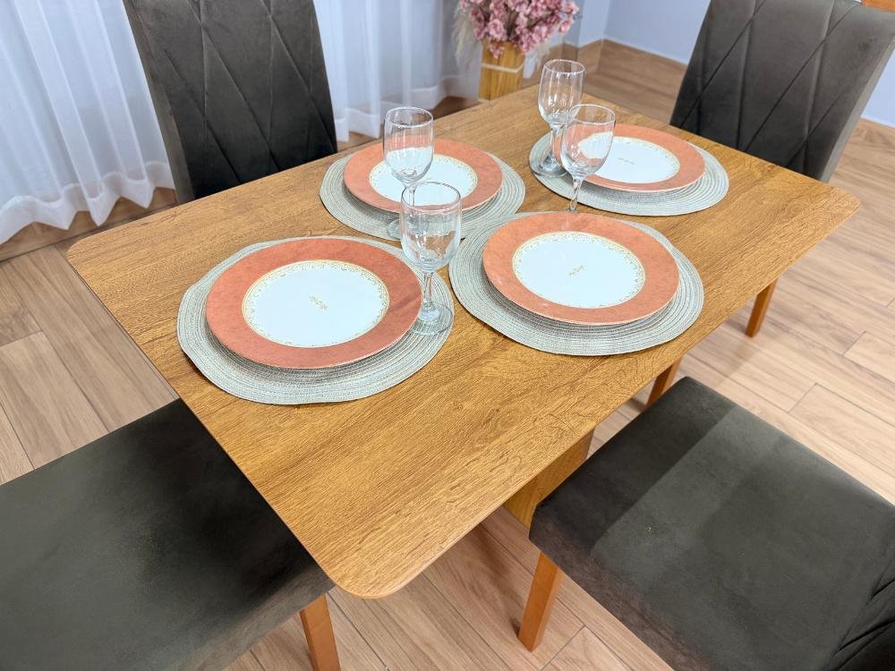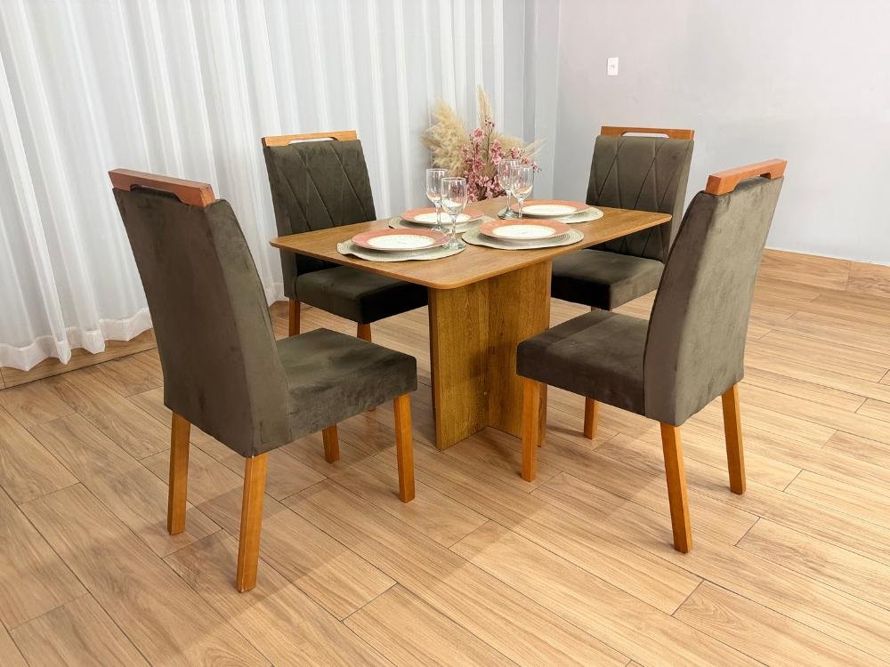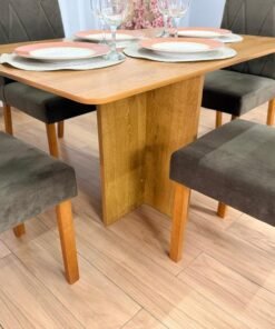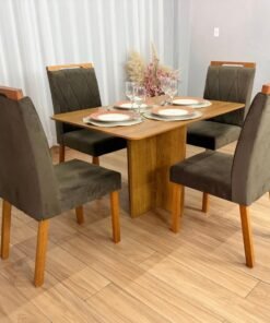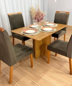 Seja o primeiro a avaliar “Mesa de Jantar Salinas 1.20×0.80 s/Vidro c/4 Cadeiras Isa – Cinamomo/Marrom Veludo”