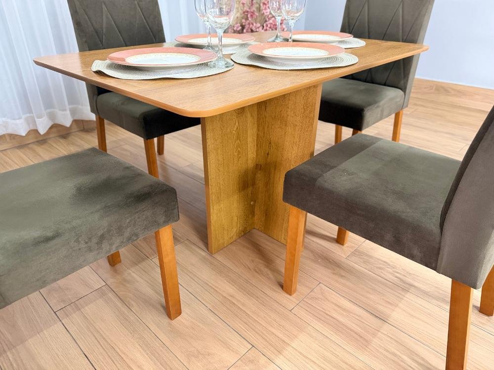 Mesa de Jantar Salinas 1.20×0.80 s/Vidro c/4 Cadeiras Isa – Cinamomo/Marrom Veludo