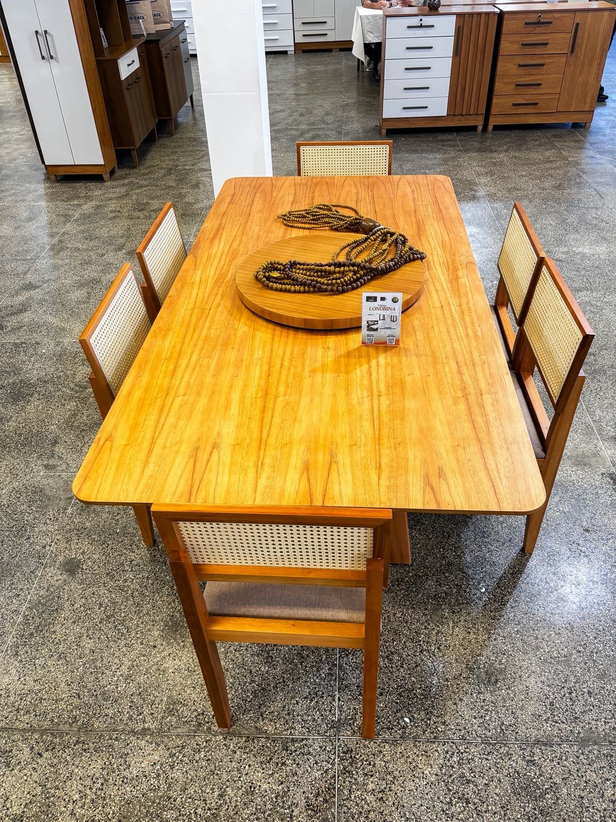 Seja o primeiro a avaliar “Mesa Dubai Flex 160x80cm SEM Vidro Cel Móveis com 4 Cadeiras Santorini Madeira Tecido Linho Minas Plac”