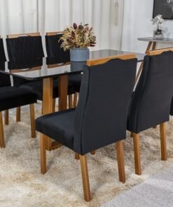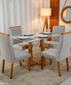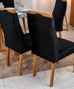 3{%%}DESCRIÇÂO{%%}Mesa Pedro Mel Vidro OFF 120×80 4 Cadeiras Genova Veludo Prata 514 Madeira Maciça Art Assento – Entregue Montada