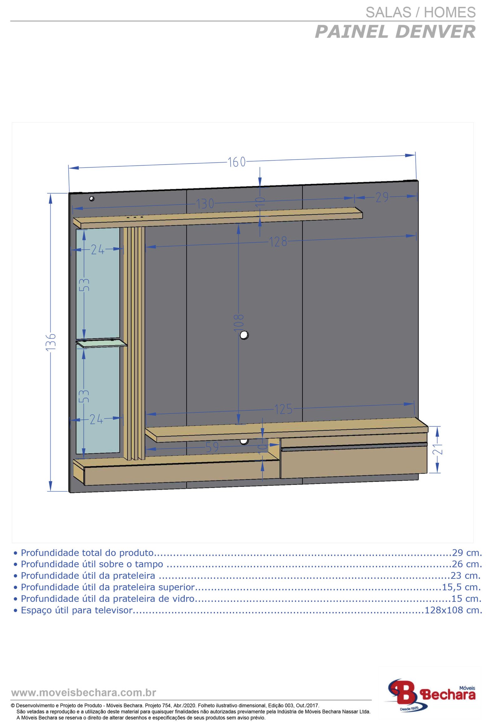 – Espaço para TV (LxP): 108 cm x 128 cm
