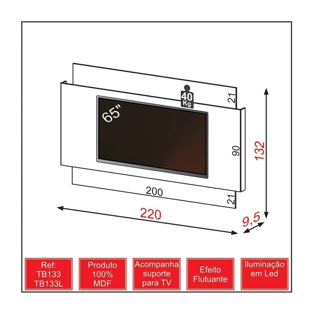 Painel até 65″ Anita TB133L Off White/Freijó – DALLA COSTA