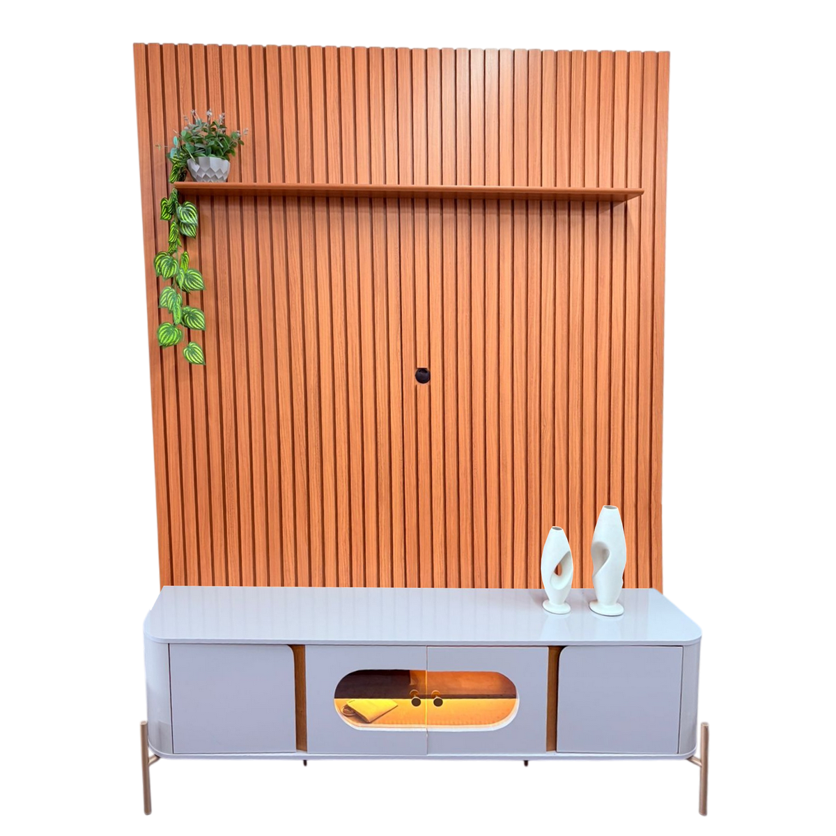 Painel até 75″ Arbo 1.9 Cedro + Rack Juquehy Off White/Naturale – EDN MÓVEIS + BECHARA