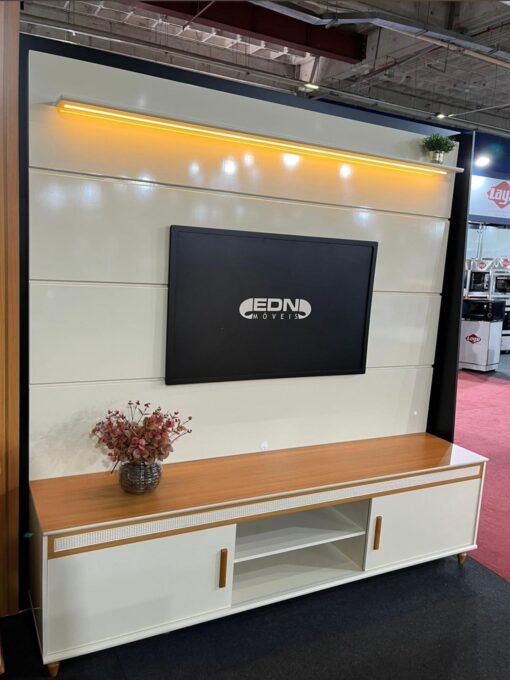 Painel até 75″ Bliss + Rack Comodoro 1.8 Off White/Cedro – EDN MÓVEIS