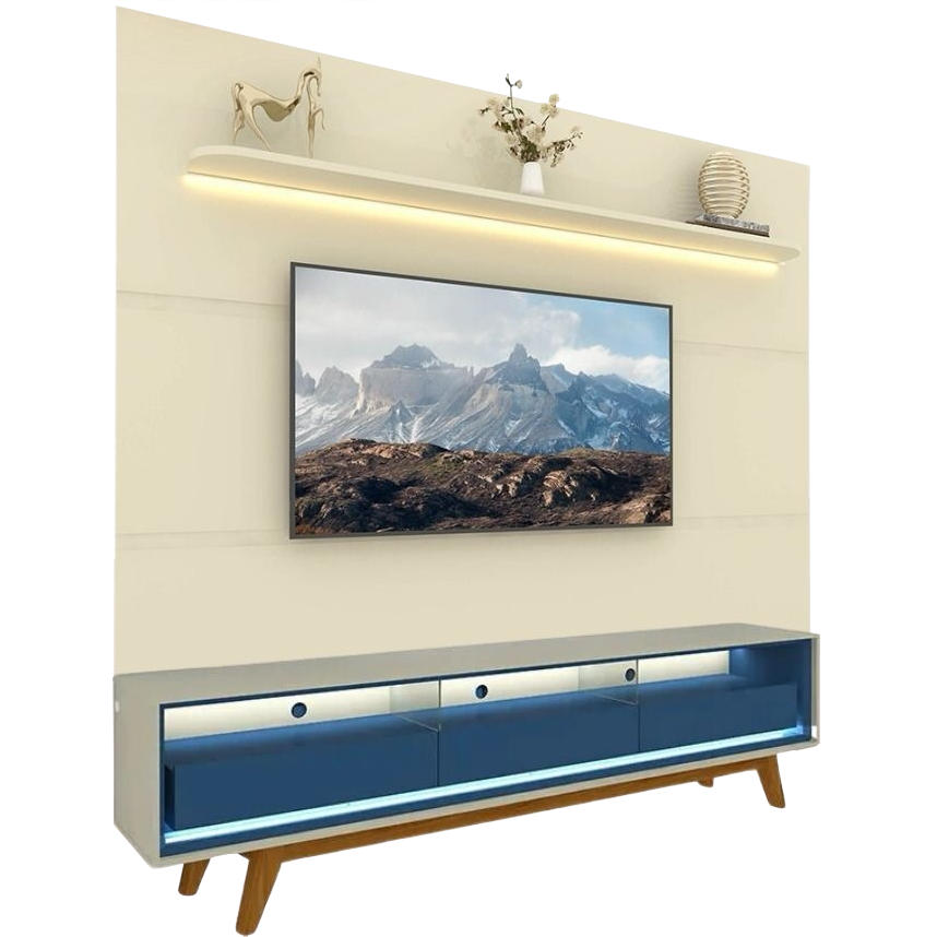 Painel Royal 220 Off White + Rack Requinte 212 Off White/Azul – GELIUS