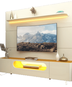 Painel até 85″ Royal 220 Off White + Rack Nobre 210 (Pés de Vidro) Off White/Naturale – GELIUS