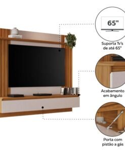3{%%}Descrição{%%}Painel NT 1365 Larg. 1.60m Off/Freijó C/ Detalhe Ripado para TV até 65″ – Notável
