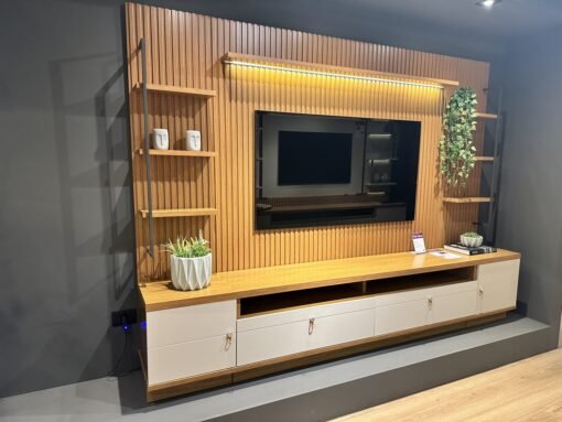Painel + Rack + Dois Módulos Laterais Ouro Preto Nature/Off White – LINEA BRASIL