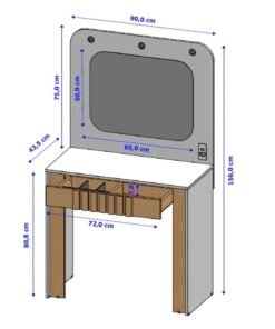 3{%%}Descrição{%%}Penteadeira Camarim Rouge Branco/Nature Larg. 0.90m – Bechara