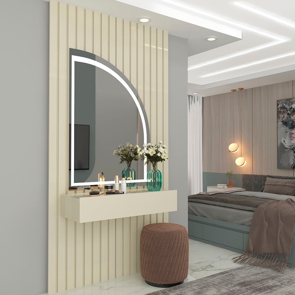 Penteadeira Realeza Ripada Naturale/Off C/ Espelho e LED Larg. 0.94m – Gelius
