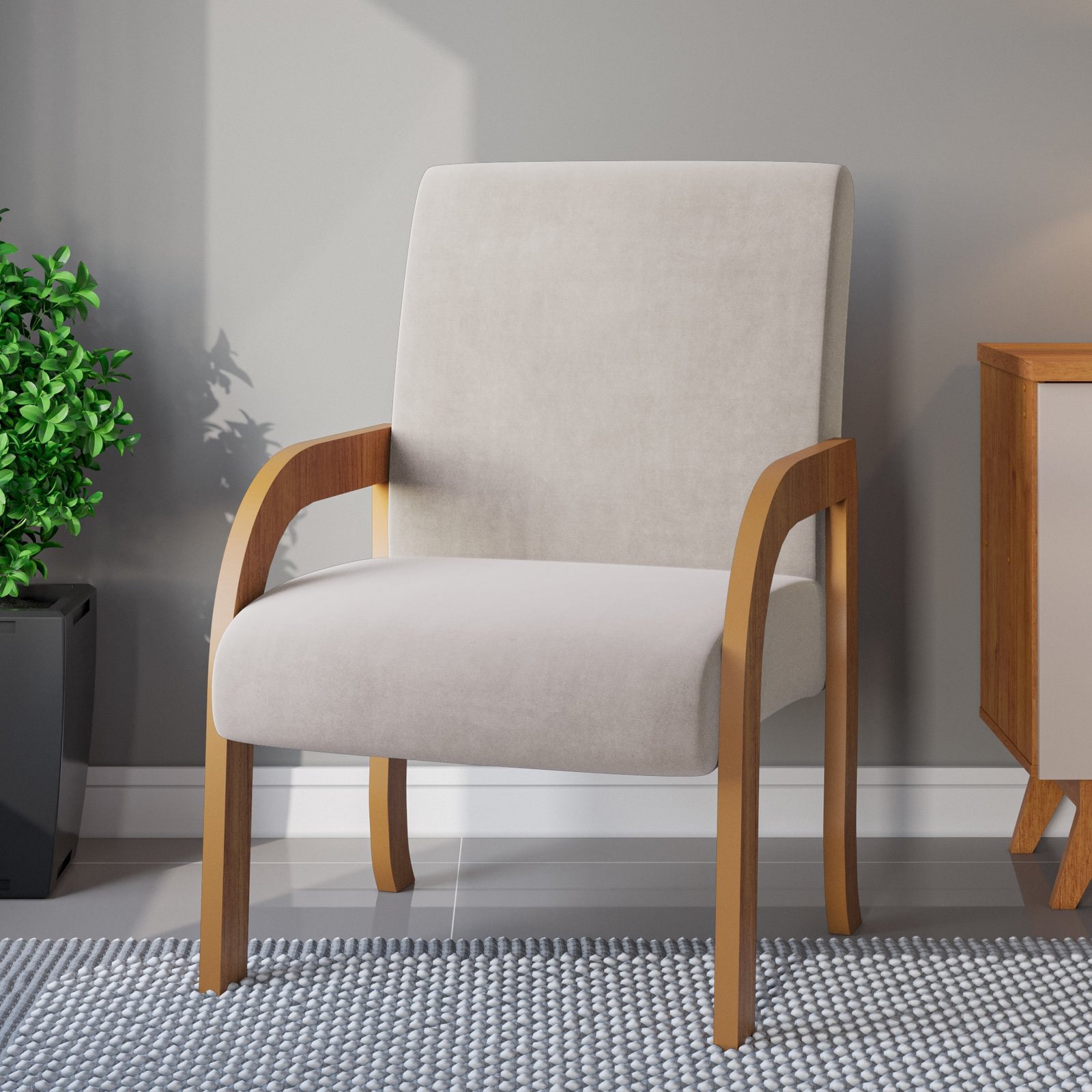 Poltrona Vand Mel/Veludo Marfim – VIERO MÓVEIS
