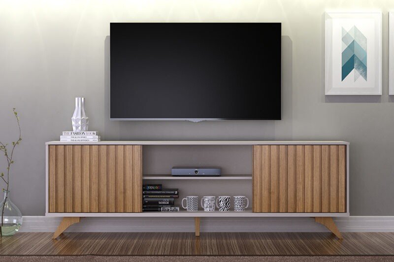 3{%%}Descrição{%%}Rack Bancada Manaus Ripado Larg. 2.00m Off White/Cinamomo – Valdemoveis