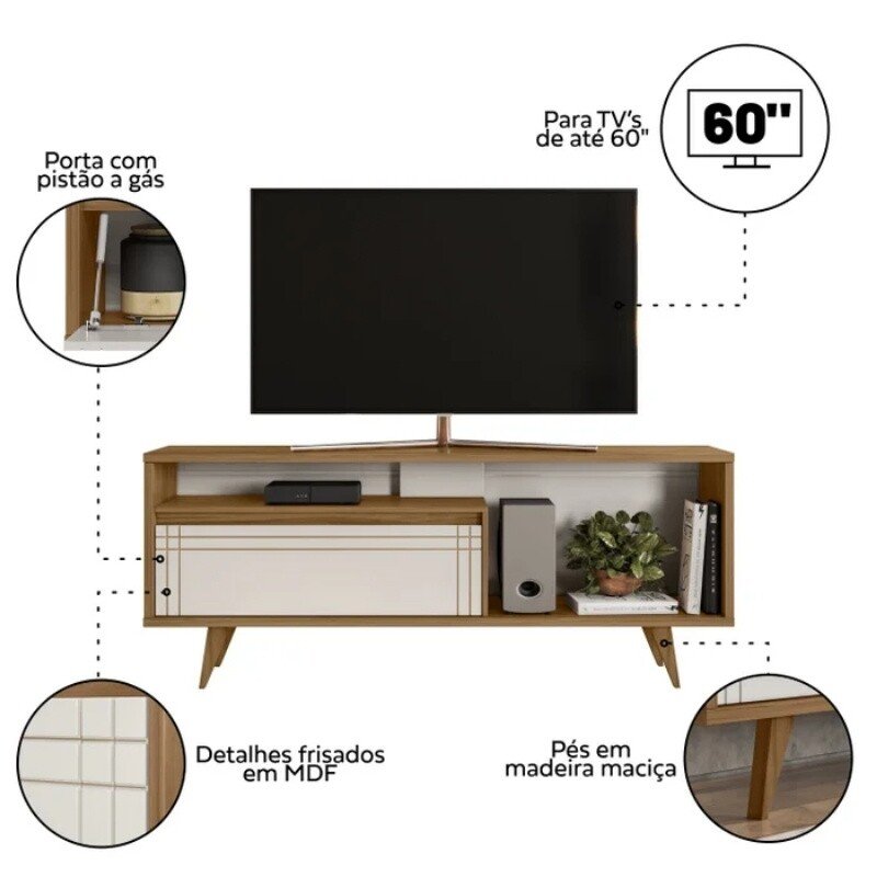 3{%%}Descrição{%%}Rack Bancada NT 1315 Freijó/Off TV até 60 polegadas Larg. 1.63m – Notável