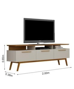 – Espaço no tampo para TV com pé 2.00×0.38 m (LxP)