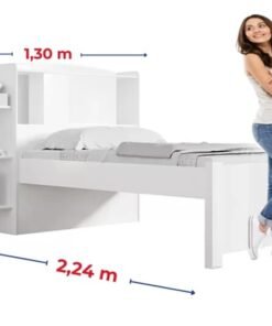 – Prateleira laterais que podem ser usadas para colocar livros, objetos e enfeites. Além disso pode ser montada em ambos os lados da cabeceira.
