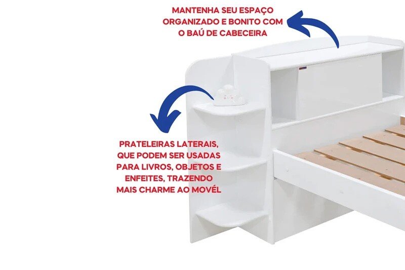 – Cabeceira com baú para melhor aproveitamento do espaço.