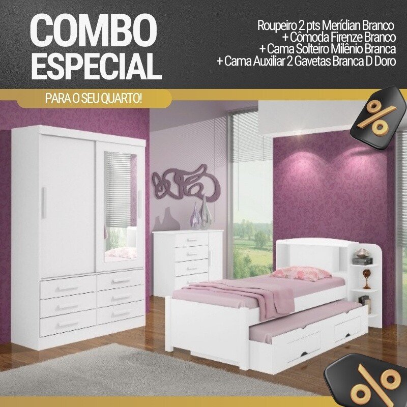 Cama Auxiliar Solteiro 2 Gavetas Branca D Doro