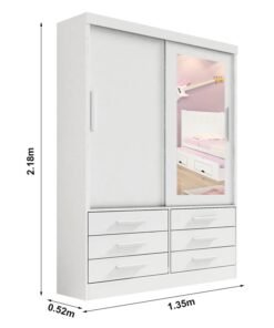 3{%%}Descrição{%%}Guarda-Roupa Solteiro 2 portas Merídian Branco Larg. 1.35m D’Doro