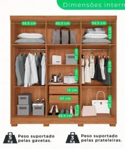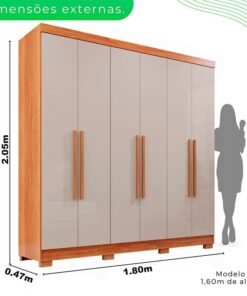 3{%%}Descrição{%%}Roupeiro Casal Recife Cinamomo/Off 6 Portas C/Pés Larg. 1.80m – Sallêto