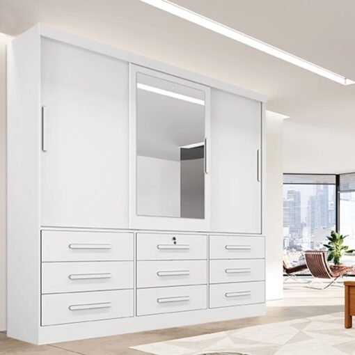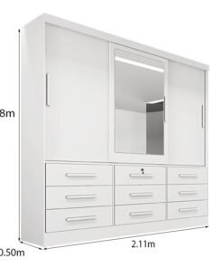 3{%%}Descrição{%%}Roupeiro Casal Turim Branco 3 Portas 9 Gavetas C/ 1 Espelho Larg. 2.11 – Bianchi