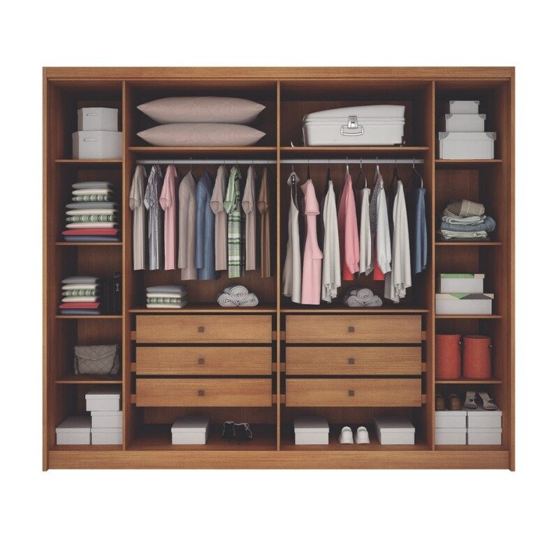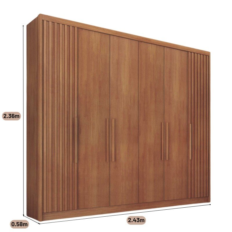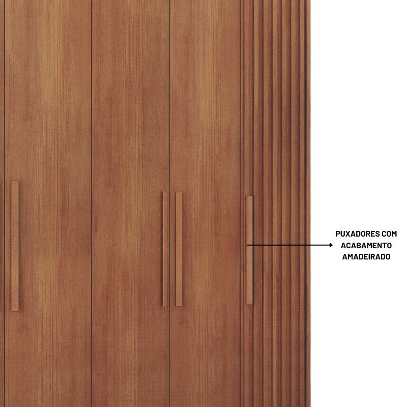 3{%%}Descrição{%%}Roupeiro Santoro Cumaru 6 Portas 6 Gavetas C/Detalhe Ripado 100% MDF Larg. 2.43m Novo Horizonte
