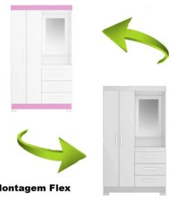 Seja o primeiro a avaliar “Roupeiro Solteiro NT 6020 Branco/Rosa 2 portas 3 Gavetas Flex C/Pés Larg. 1.08m – Notável”