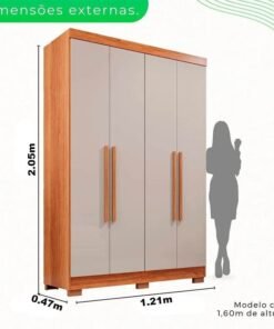3{%%}Descrição{%%}Roupeiro Solteiro Recife Cinamomo/Off 4 Portas 2 Gavetas C/Pés Larg. 1.21m – Sallêto