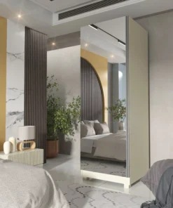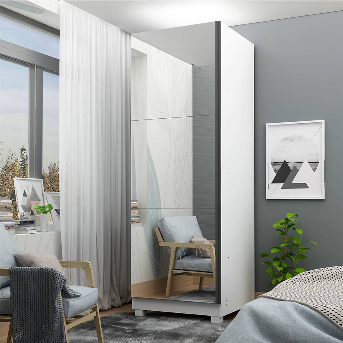 Sapateira Gold com Espelho, Côr Off White, da Gelius Móveis, Medidas: Alt 2,255m Larg 0,63m Prof 0,553 Peso 59Kg, Estrutura 100% MDP, 1 Porta de Bater com Espelho (3 Lâminas) de 3mm, Puxador Perfil de Aço, 5 Pratleiras Internas e Pés Plásticos Incluso.