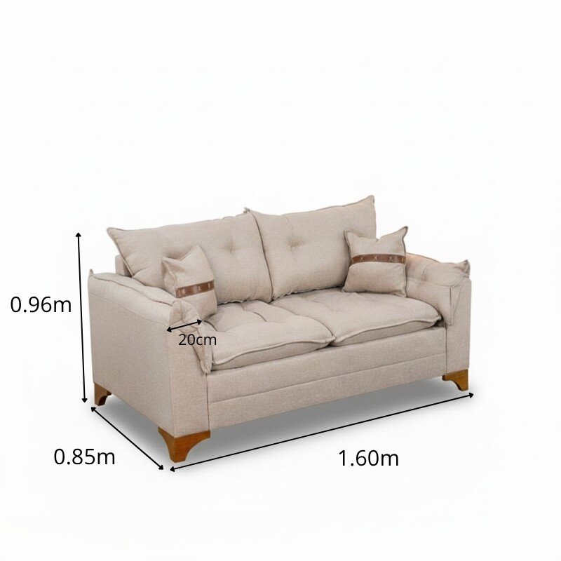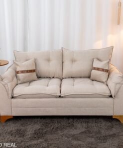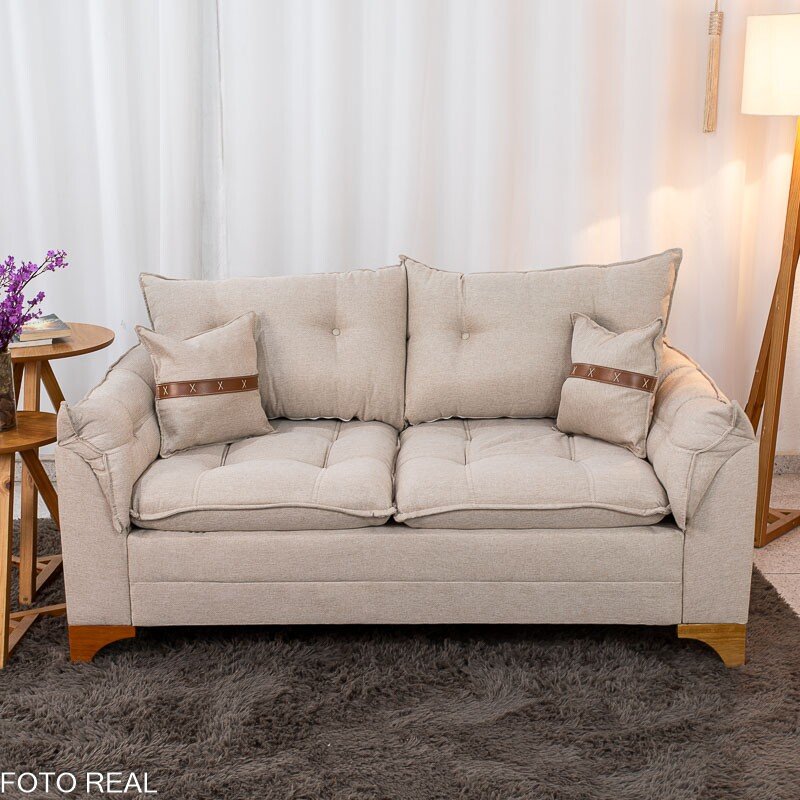 3{%%}Descrição{%%}Sofá 2 Lugares Creta Larg. 1.60m Linho Bege 24 – Molas bonnel