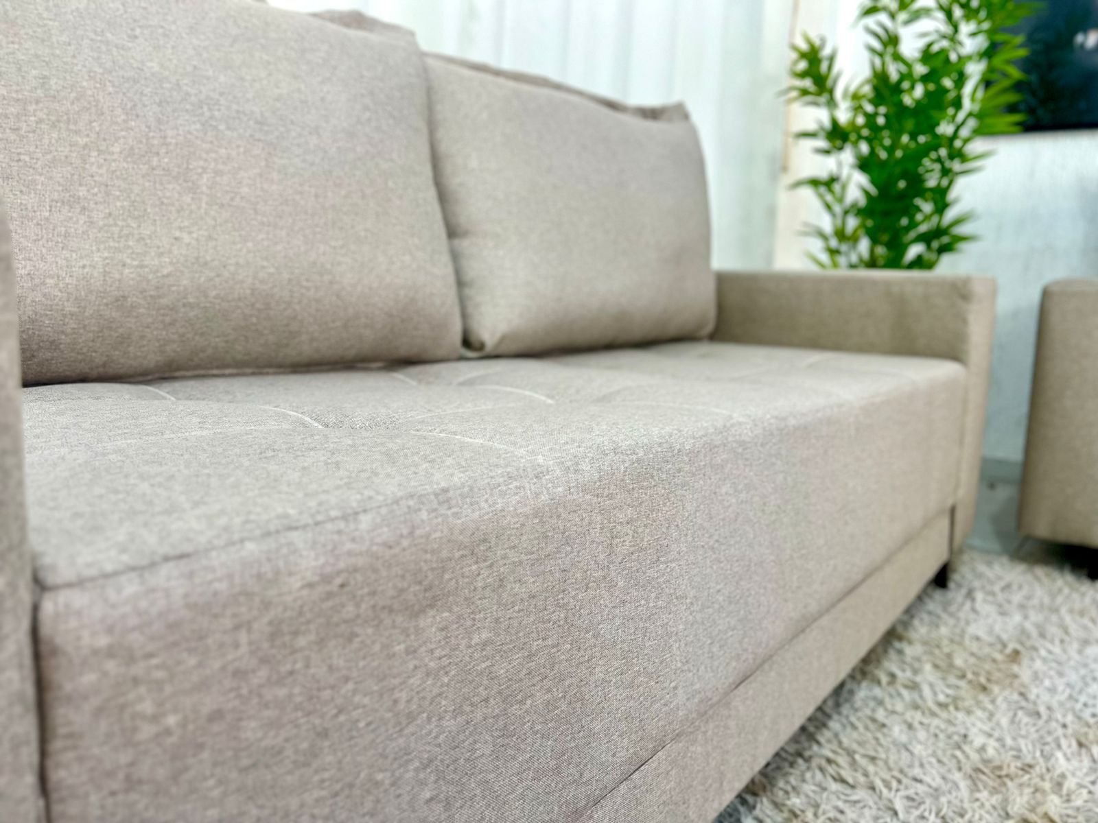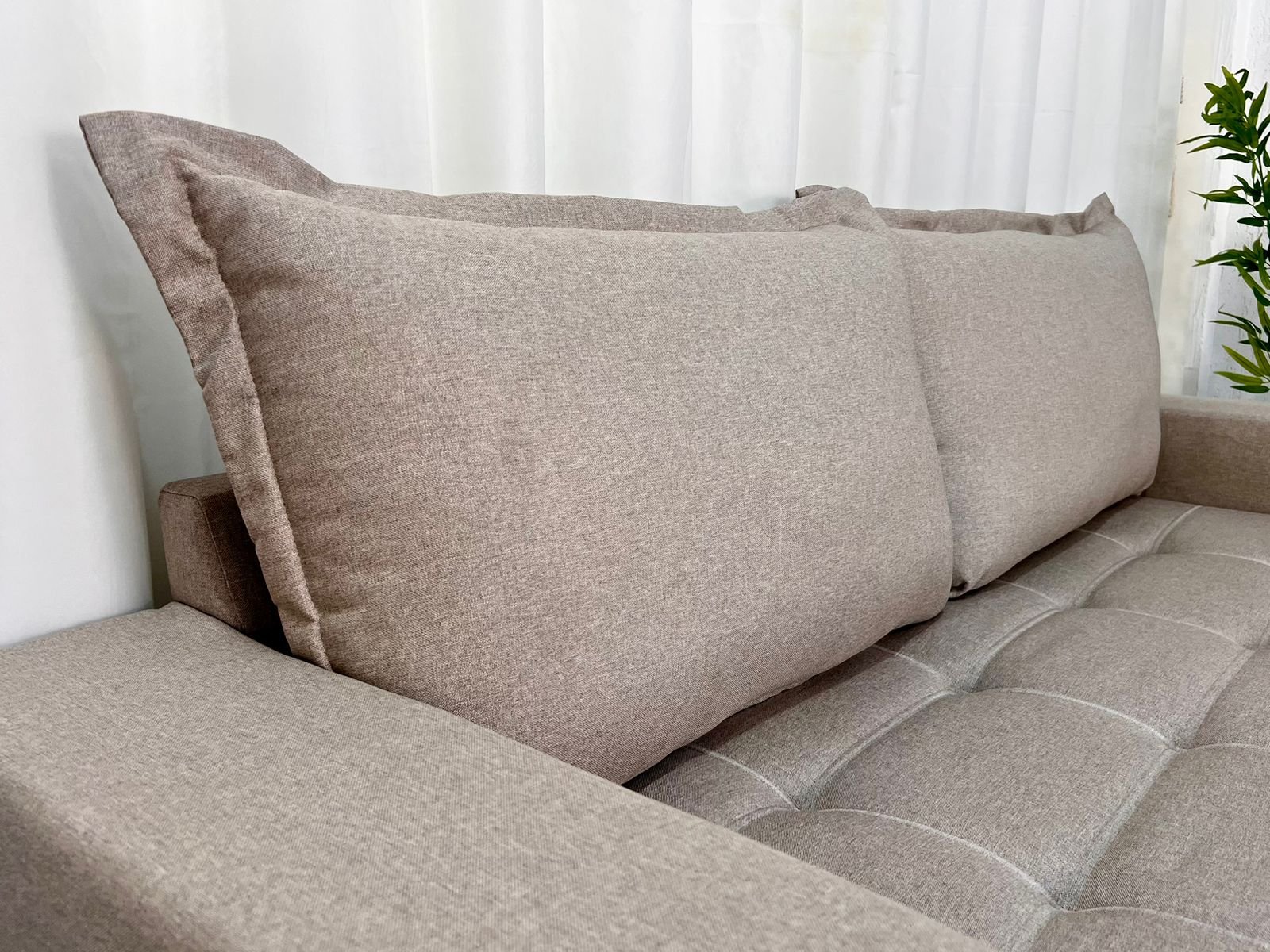 O linho possui uma textura naturalmente sofisticada, que confere ao sofá um aspecto elegante e atemporal