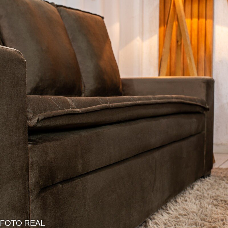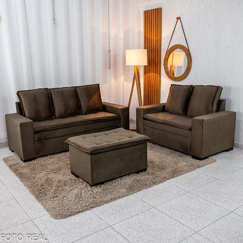 3{%%}Descrição{%%}Sofá 3 e 2 lugares França com Puff Veludo Marrom A17 Larg. 1.86m